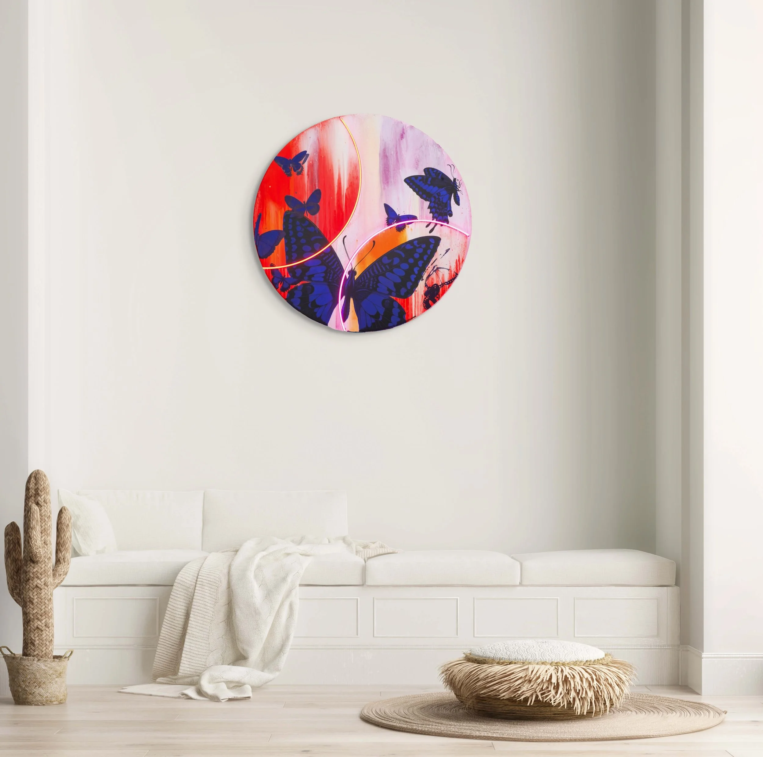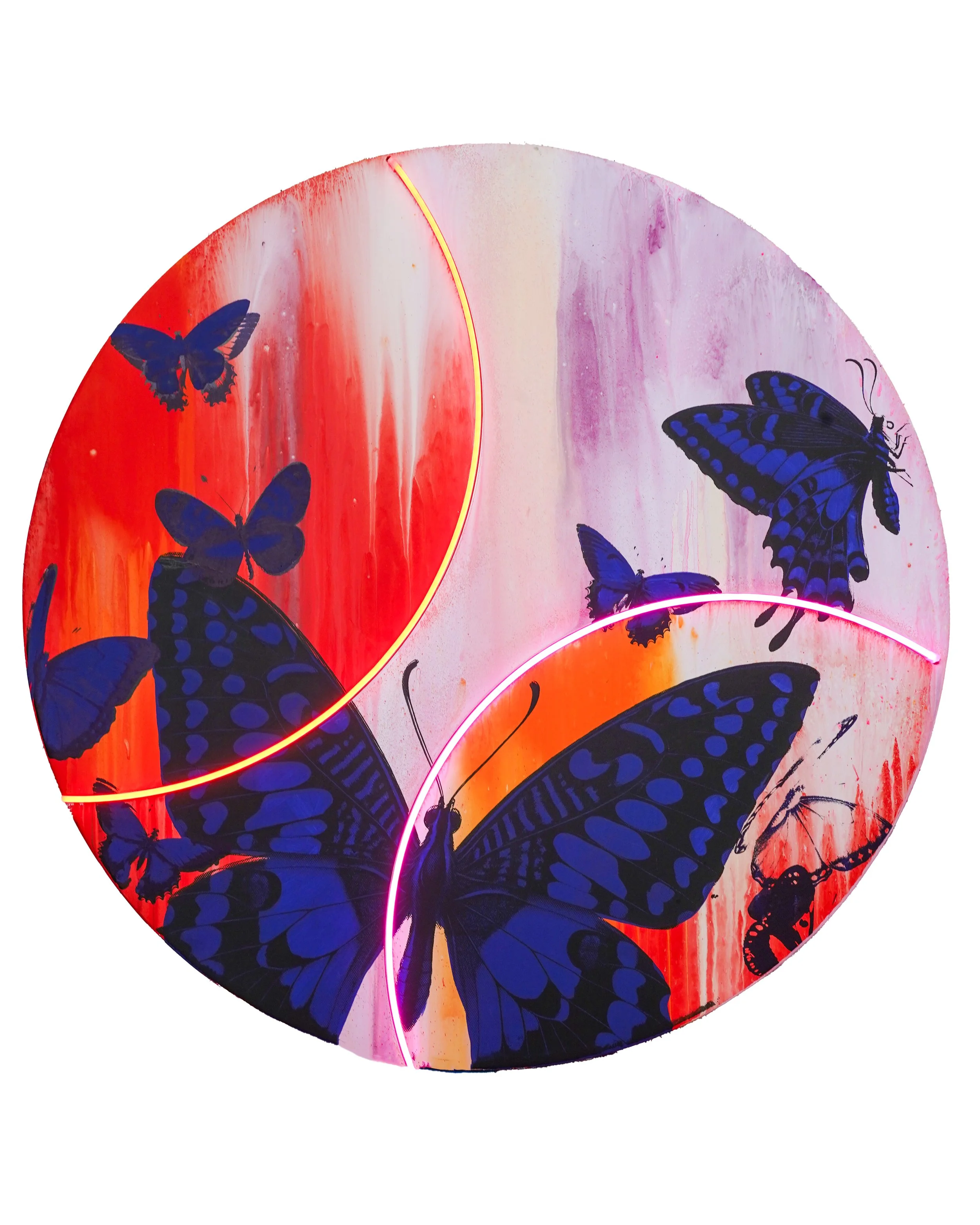 acrylic on wood panel, LED neon