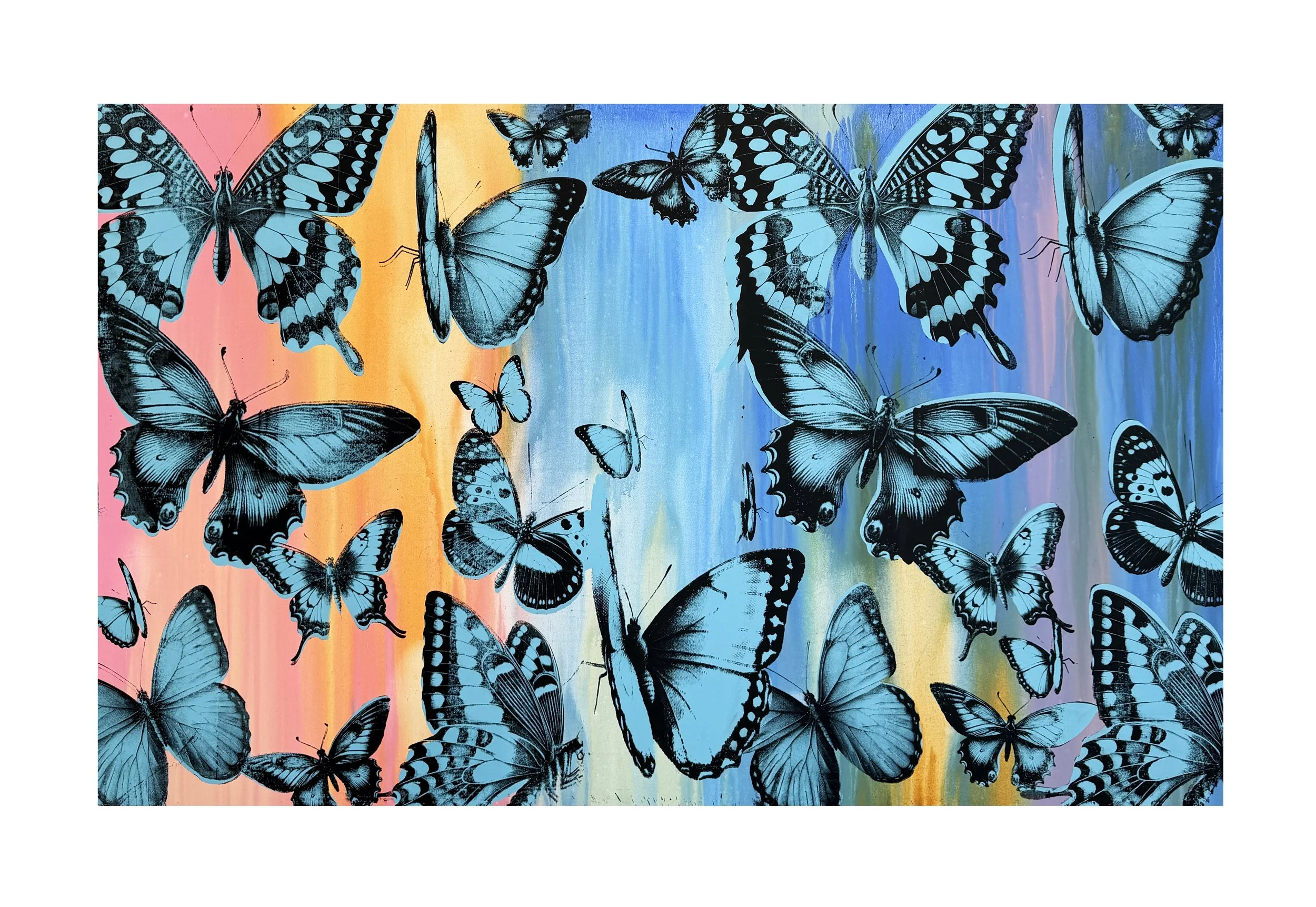 silk screen print , acrylic paint, diamond dust, on stretch canvas