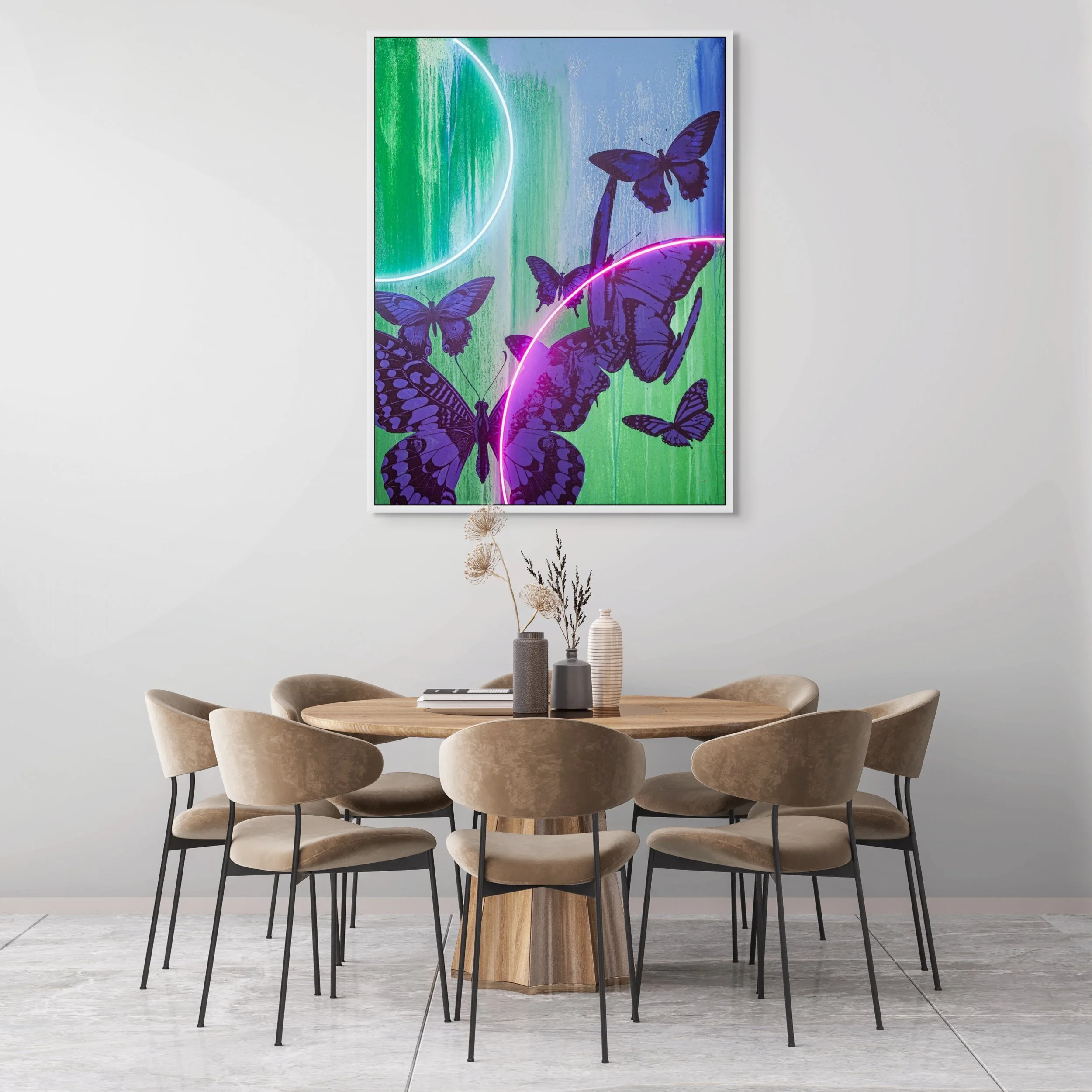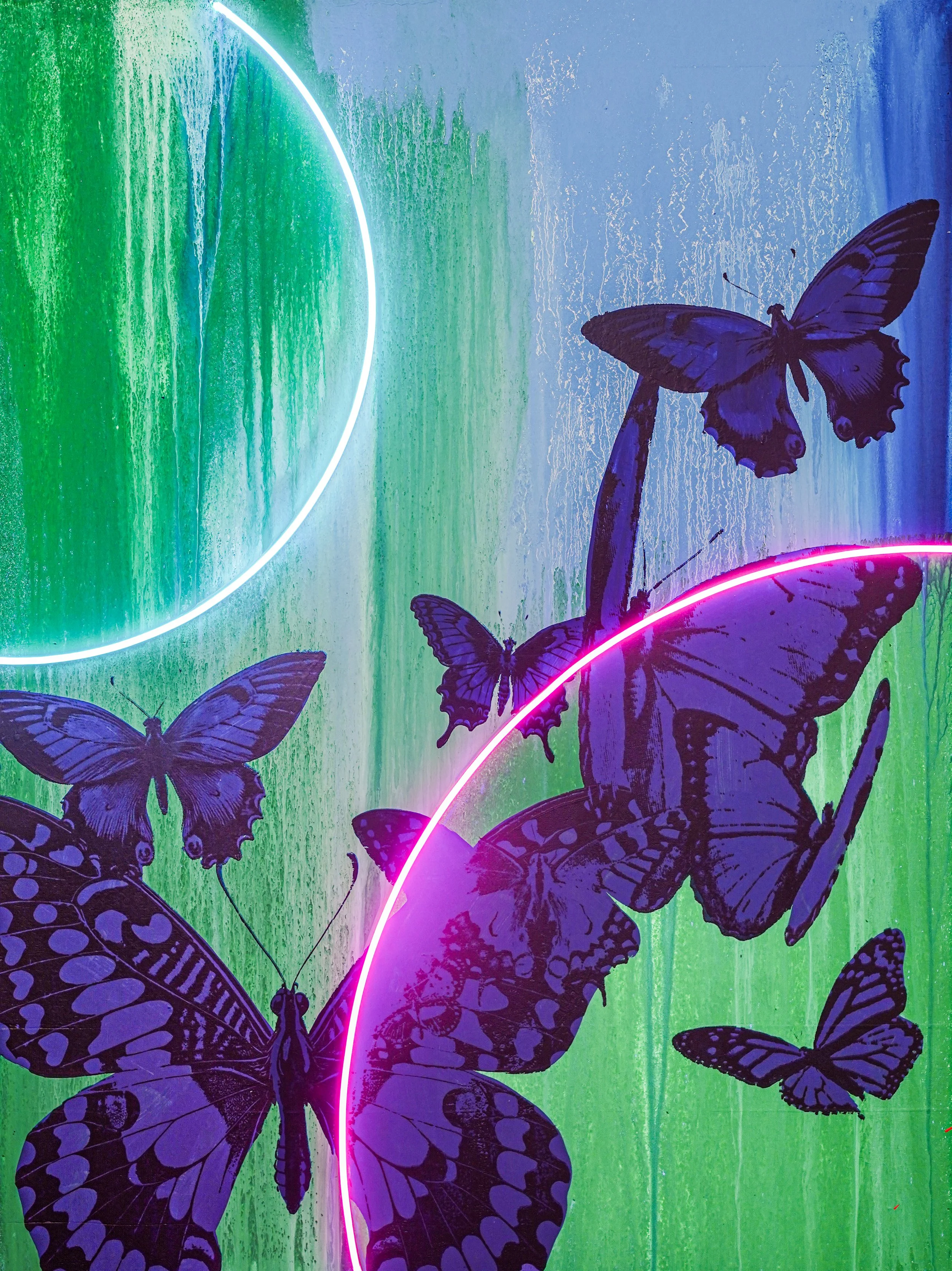 signed and datedacrylic on wooden panel, LED neon